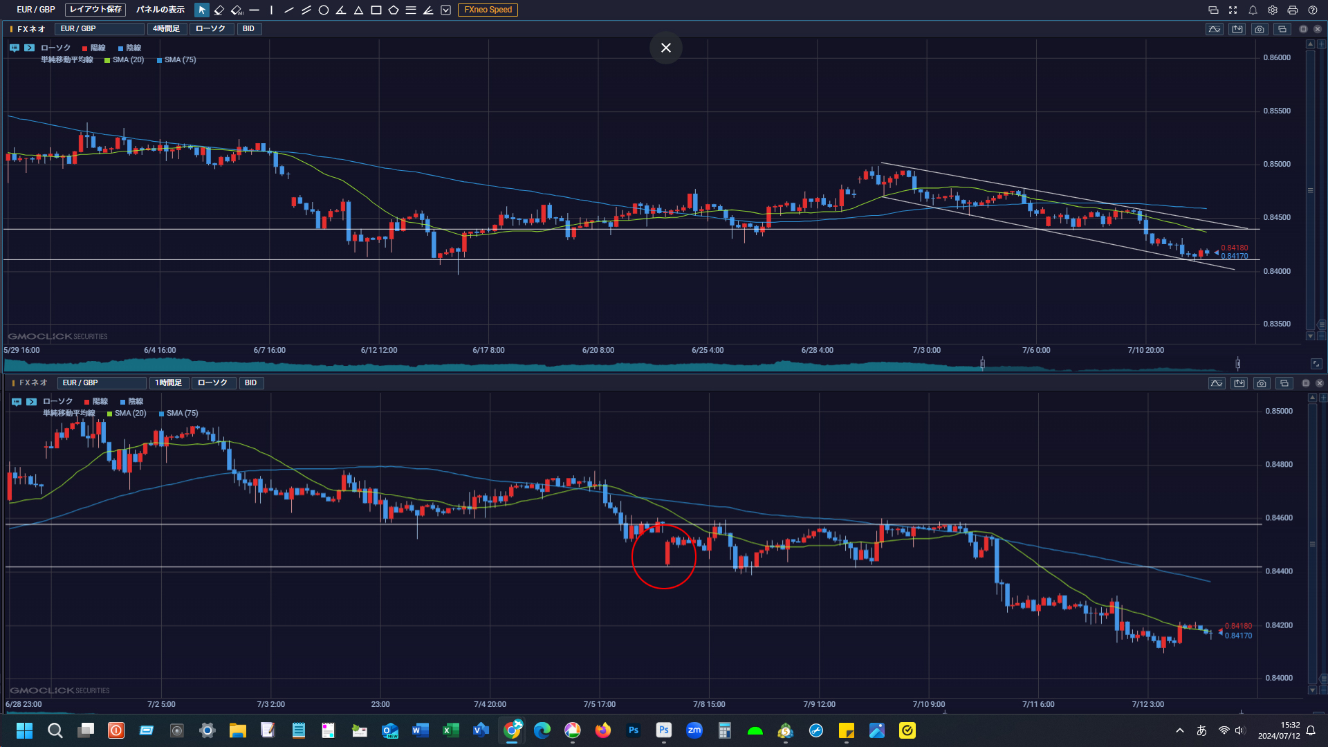EUR/GBP 4H/1Hのチャート